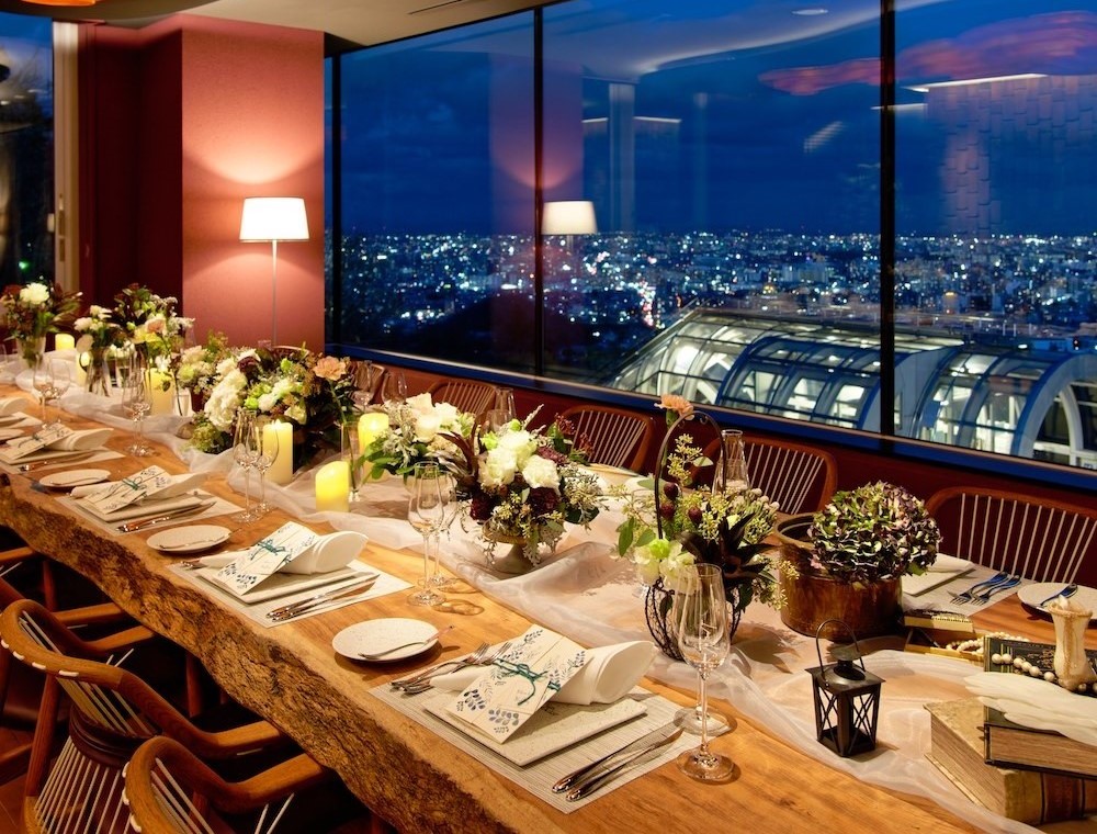 The private VIP room offers a panoramic view of Sapporo city.
